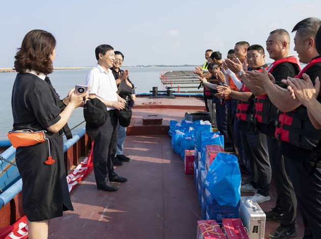 近日,赢博app最新版下载,赢博(中国)开展2022年夏季安康“三送”(送清凉、送安全、送法律)活动,赢博app最新版下载,赢博(中国)总经理仲伟涛,党委副书记、工会主席陈金师一行先后来到西城公交总站、新浦汽车总站、市区道路养护分公司猴嘴工区、石梁河采砂项目部、海陵湖养殖公司等一线场所,看望慰问奋战在高温下的一线职工,为他们送去矿泉水、洗漱套装、人丹、风油精、桃子等物品,以及《工会劳动保护工作手册》《如何保障劳动安全》《安全生产法》等安全生产法律书籍。