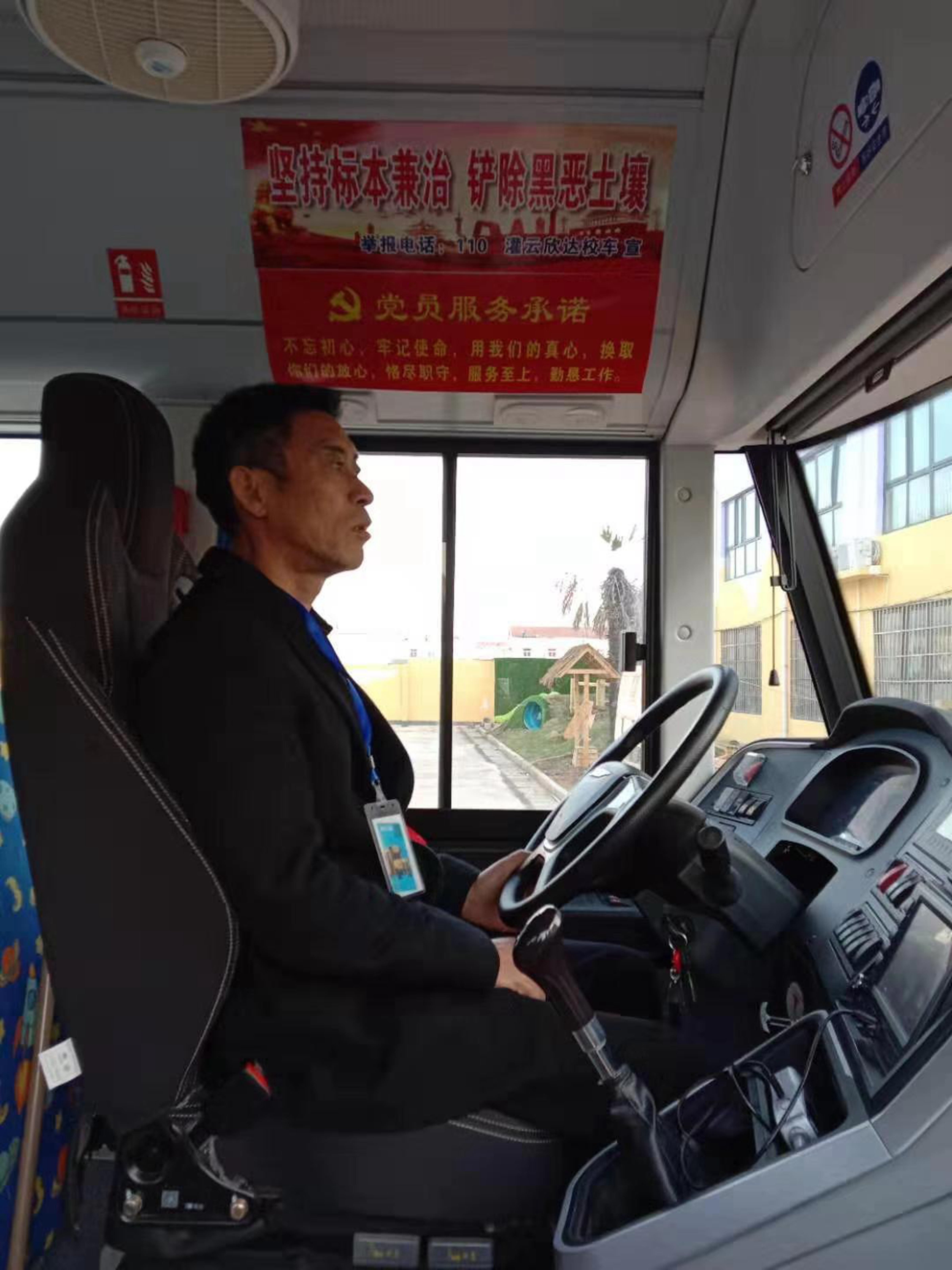 党员示范车在运营中坚守党员承诺,严格遵守交通规则,谨慎驾驶,坚决做到关爱每一位乘车学生,规范行为,忠于职守,时刻以党员身份要求自己,并通过“亮身份、亮标准、亮承诺、亮行为”向学校和乘车学生展示灌云欣达校车良好的服务形象,为学生上下学提供一份安全保障。