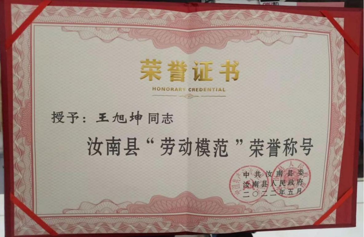 “汝南县劳动模范”——王旭坤