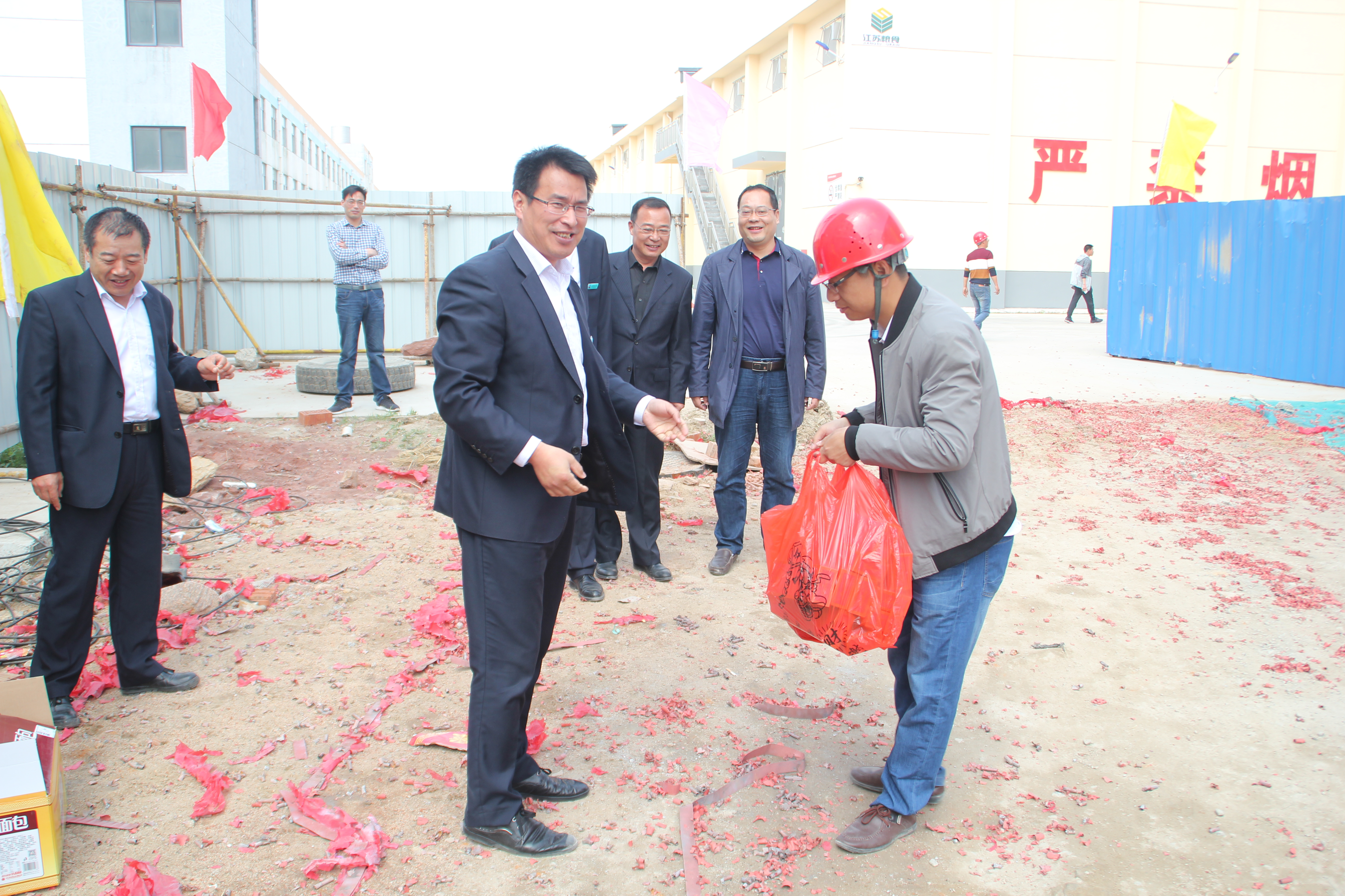 510日上午928分,总投资4000万元的连云港和茂粮食仓储项目二期工程顺利封顶。汽车公司党委书记周文君、党委副书记李永成、副总经理赵东明、新海粮库副主任姜永好,施工、监理单位主要领导以及公司各单位、处室相关负责人到达施工现场,参加观礼。