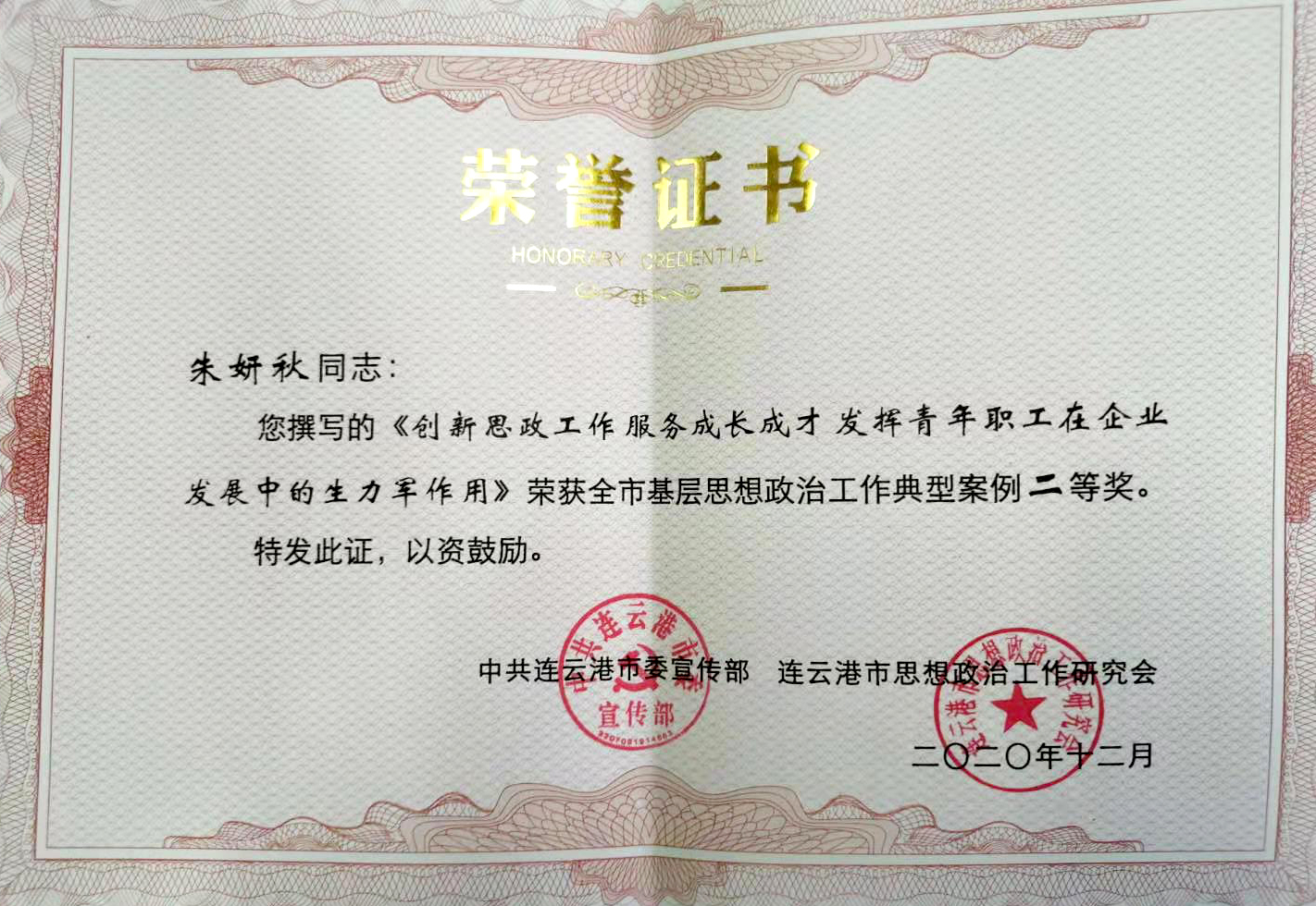 赢博app最新版下载,赢博(中国)职工获“全市基层思想政治工作典型案例”二三等奖