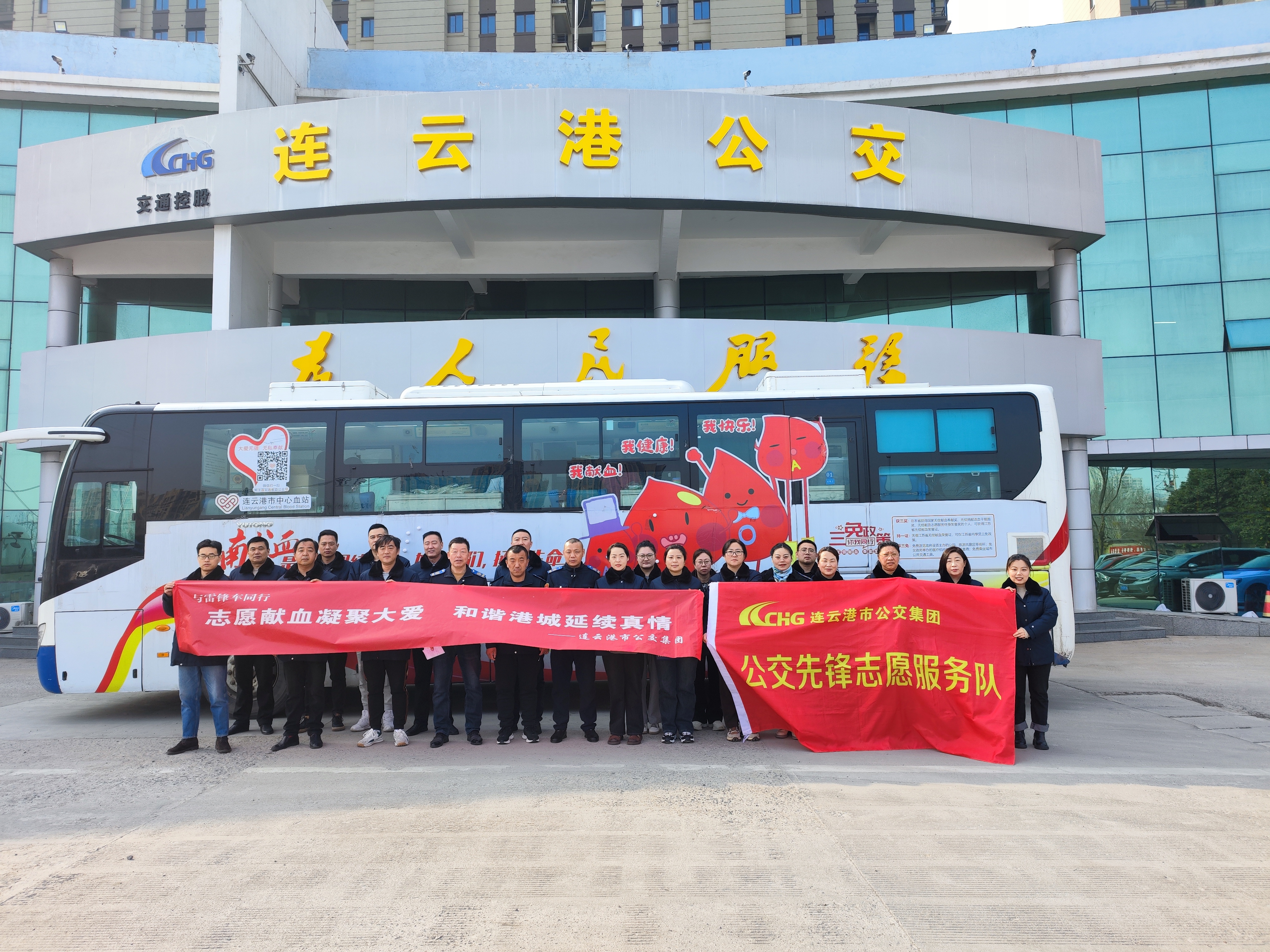 在新华公交总站,连云港公交先锋志愿服务队志愿者们积极配合血站医护人员的工作安排,做好填写健康状况登记表、血压测量、血液初检、录入信息等工作,符合献血条件的同志在流动献血车内有序进行采血。党员干部以身作则、带头报名,并自愿当起无偿献血宣传员,向其他同志普及献血知识,引导带动身边更多人参与进来。