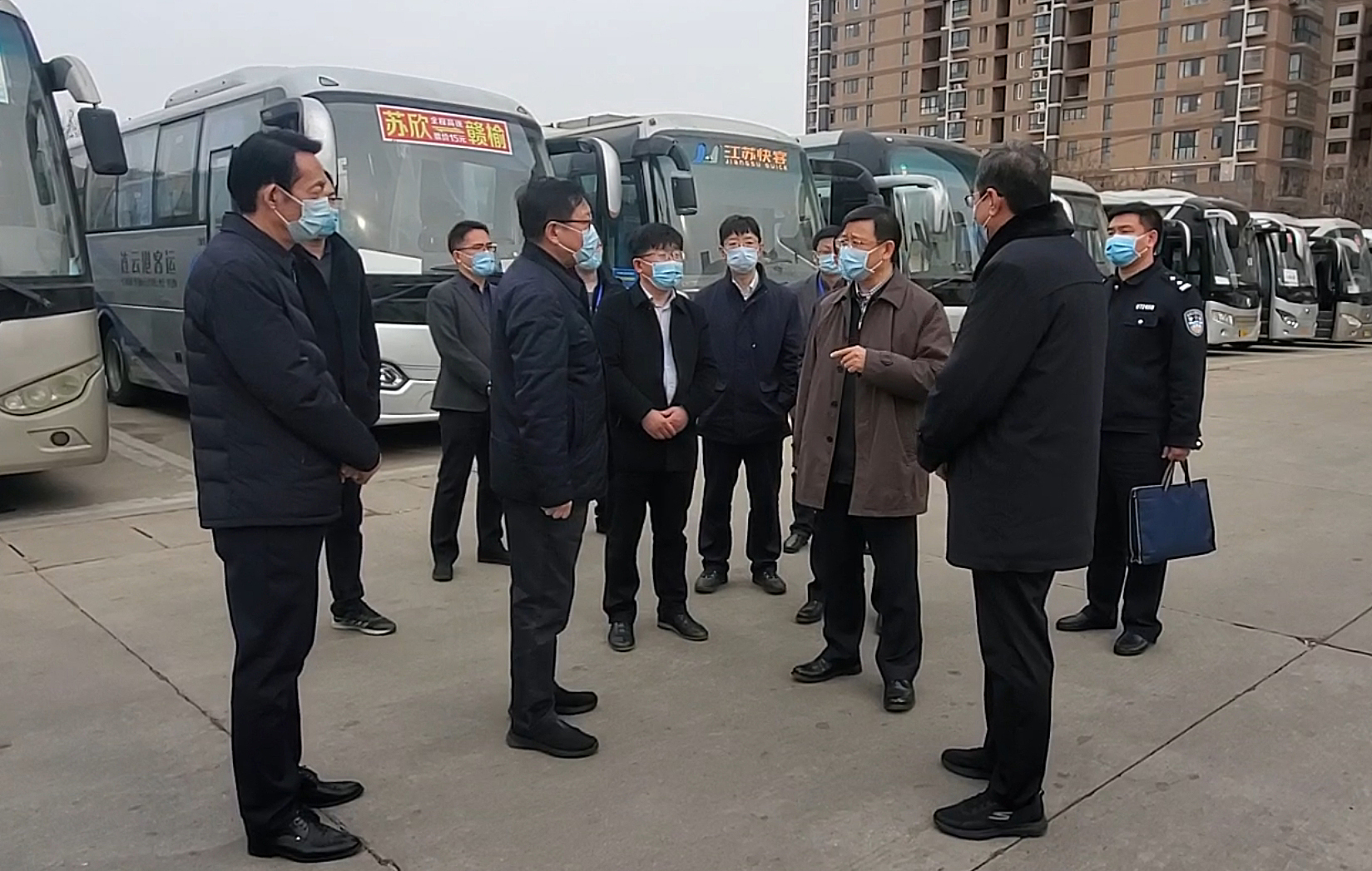 3月6日下午,市委副书记胡建军前往市交通控股赢博app最新版下载,赢博(中国)疫情防控转运保障车辆集中停放点苏欣快客站,实地调研督导疫情防控转运保障车辆及参运人员的疫情防控工作,并现场听取赢博app最新版下载,赢博(中国)董事长、党委书记刘永能就转运工作的情况汇报。市突发新冠肺炎疫情应急处置指挥部转运隔离组相关人员参与调研。