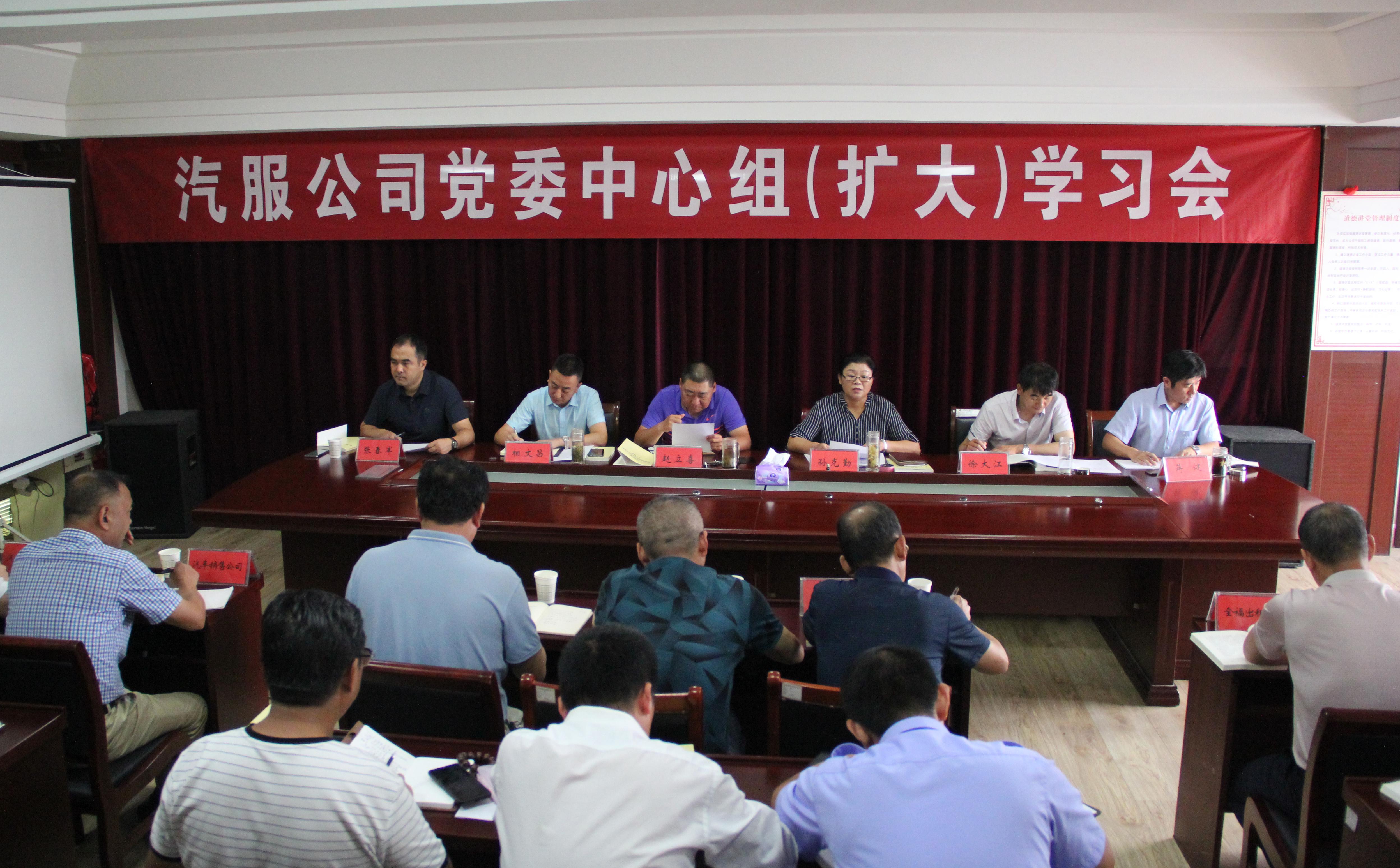 8月14日上午,海通汽服公司党委召开中心组(扩大)学习会,各权属企业领导班子成员及机关处室负责人参加会议。会议邀请赢博app最新版下载,赢博(中国)纪检组长徐大江同志出席学习会。公司党委委员相文昌同志领学《习近平新时代中国特色社会主义思想学习纲要》“关于新时代坚持和发展中国特色社会主义的政治保证”中的内容。与会人员手持读本认真学习,认真记录,会议气氛认真而又严肃。