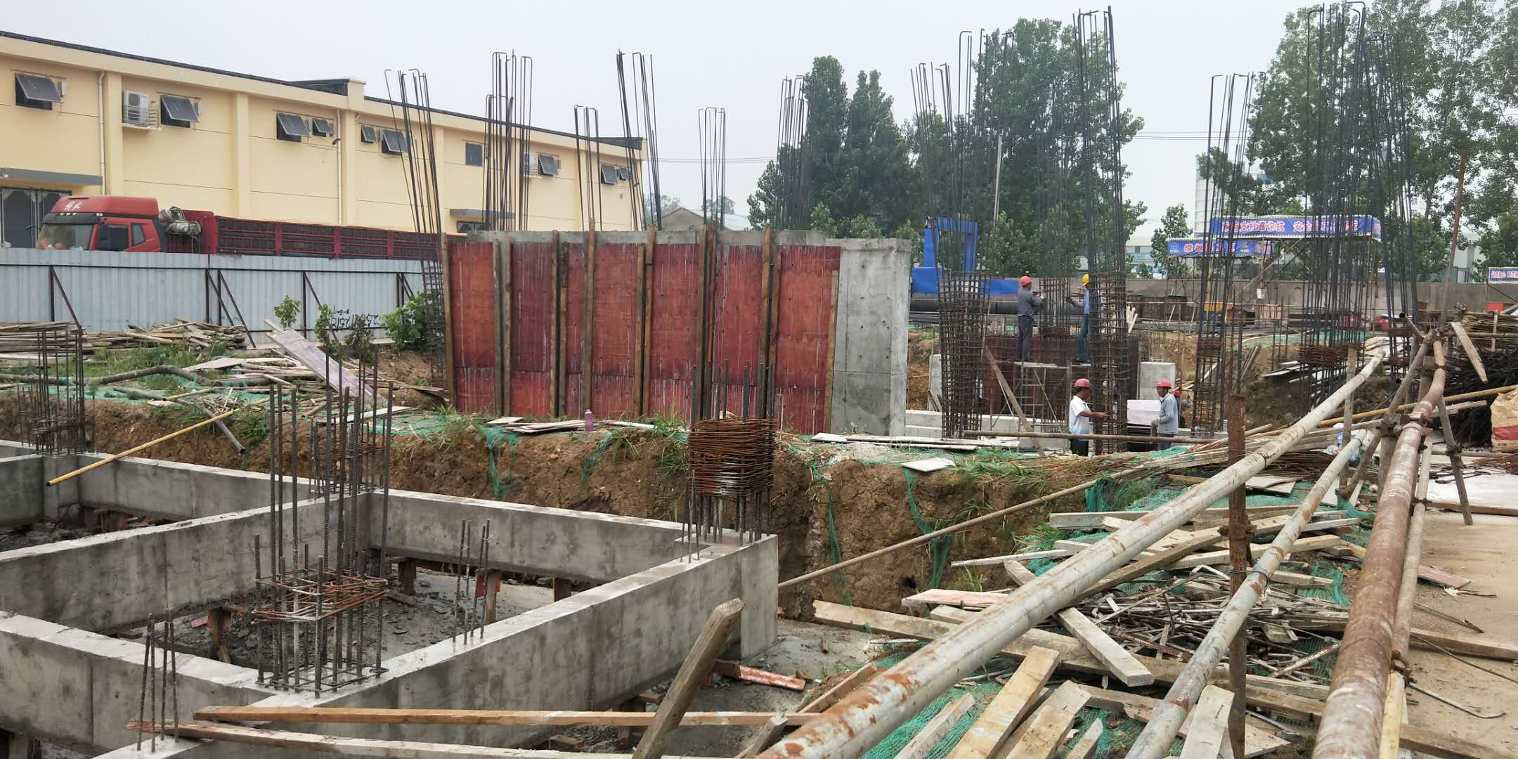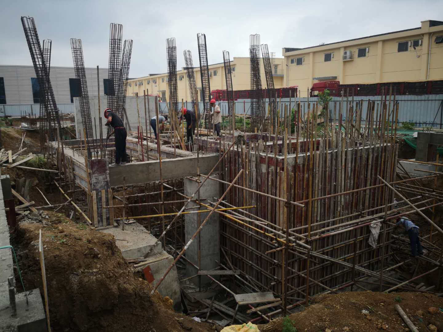 在深基坑施工过程中,为了预防大风暴雨等不可抗力天气,防止深基坑坍塌。施工单位认真做好坑壁支护以及基坑排水工作,提前做好应急预案准备。经过一个多月的加紧施工,现基础施工已顺利完成。