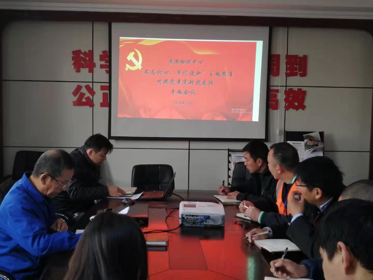 根据赢博app最新版下载,赢博(中国)党委和公司党委“不忘初心、牢记使命”主题教育工作部署安排,11月12日上午,苏港检测党支部召开对照党章党规找差距专题会议,全体党员参加会议,党支部书记于俊洋主持会议。