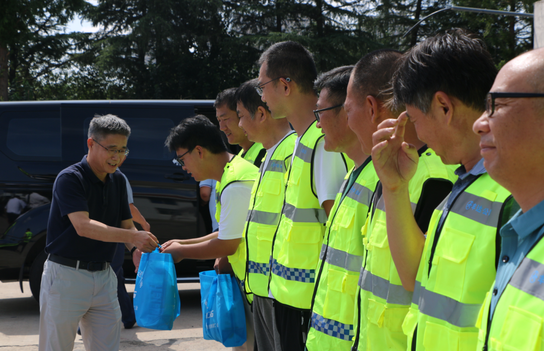仲伟涛分别走访慰问了海建工程施工现场工作人员和丰达公路养护工区的一线职工,详细了解他们的施工作息时间和安全卫生防护落实情况,对他们不畏酷暑、坚守岗位、努力工作的精神给予充分肯定。同时叮嘱大家要加强自身安全防护,在工作的同时注意防暑降温,增强自我安全防范意识,安全顺利度过高温季节。