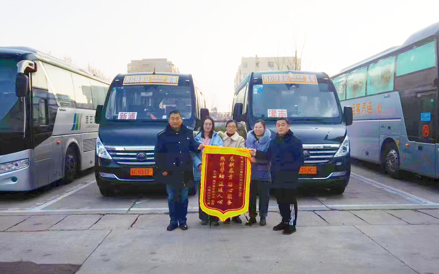 “实在是太方便了,每天风雨无阻,苏欣快客站灌南专线为我们上下班提供了方便”。1月6日上午,连汽苏欣快客站来了三位旅客,他们将一面写有“尽职尽责贴心服务,热情帮助温暖人心”的锦旗送到灌南专线负责人的手中,感谢他们一年来为旅客提供了优质便捷的出行服务。