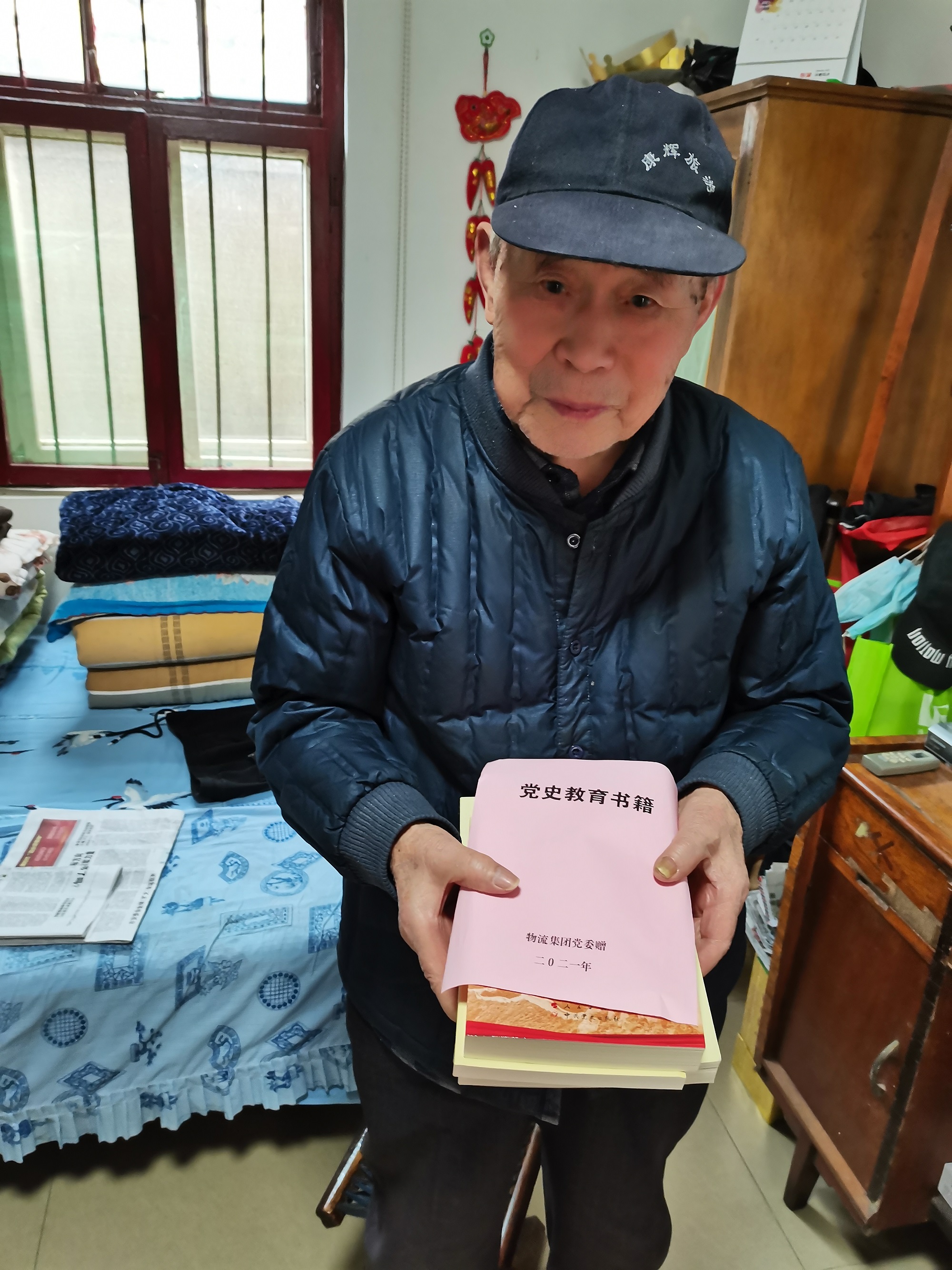 94岁高龄的离退休老干部王存柱是一位有着74年党龄的老党员,他接过物流赢博app最新版下载,赢博(中国)党委送来的党史学习资料激动地说:“党组织没有忘记我,不仅为我送来了党史学习书籍,还安排人员陪我一起学习党史知识,帮我重温党的光辉历程,感谢组织的关心。”