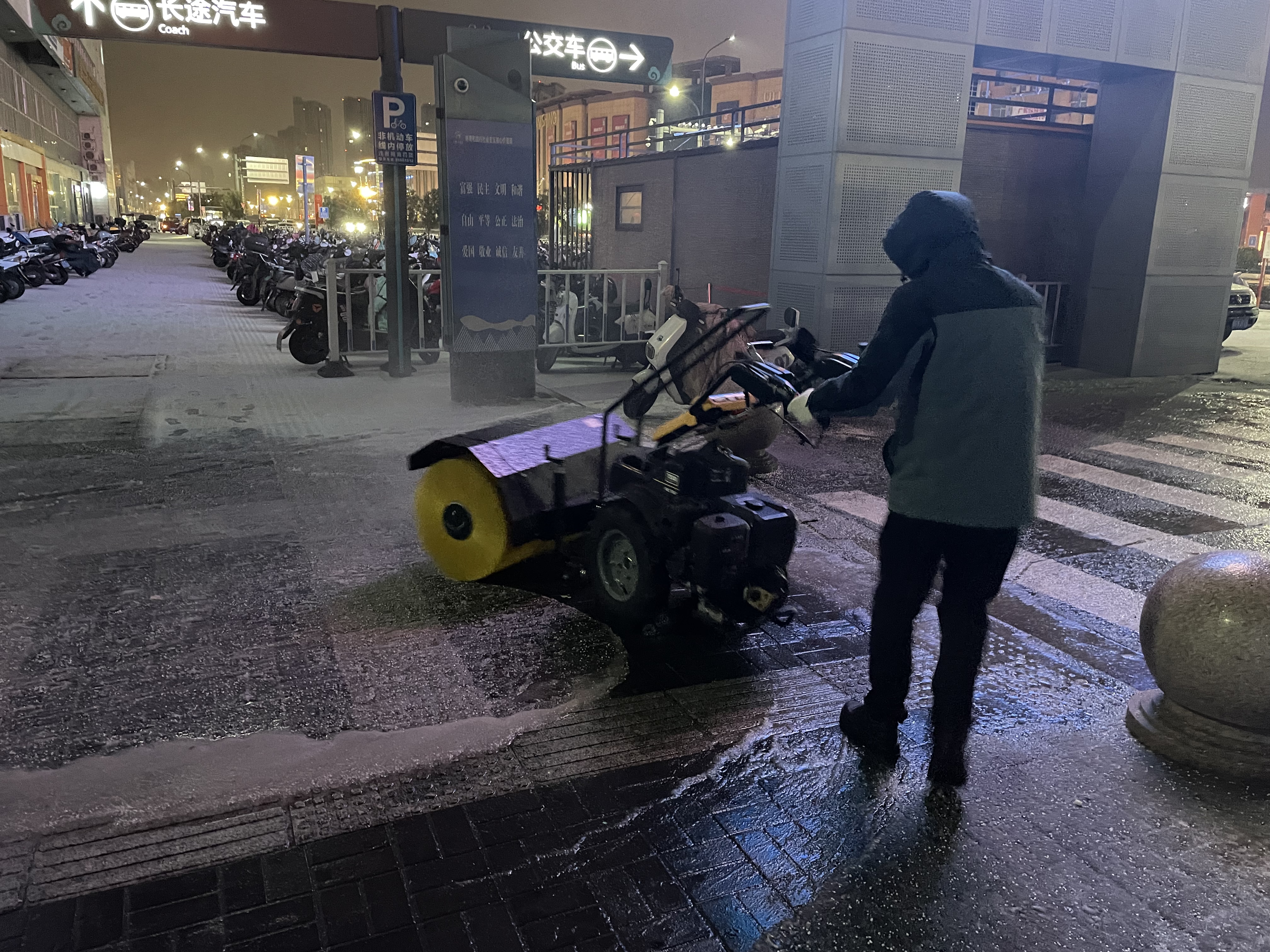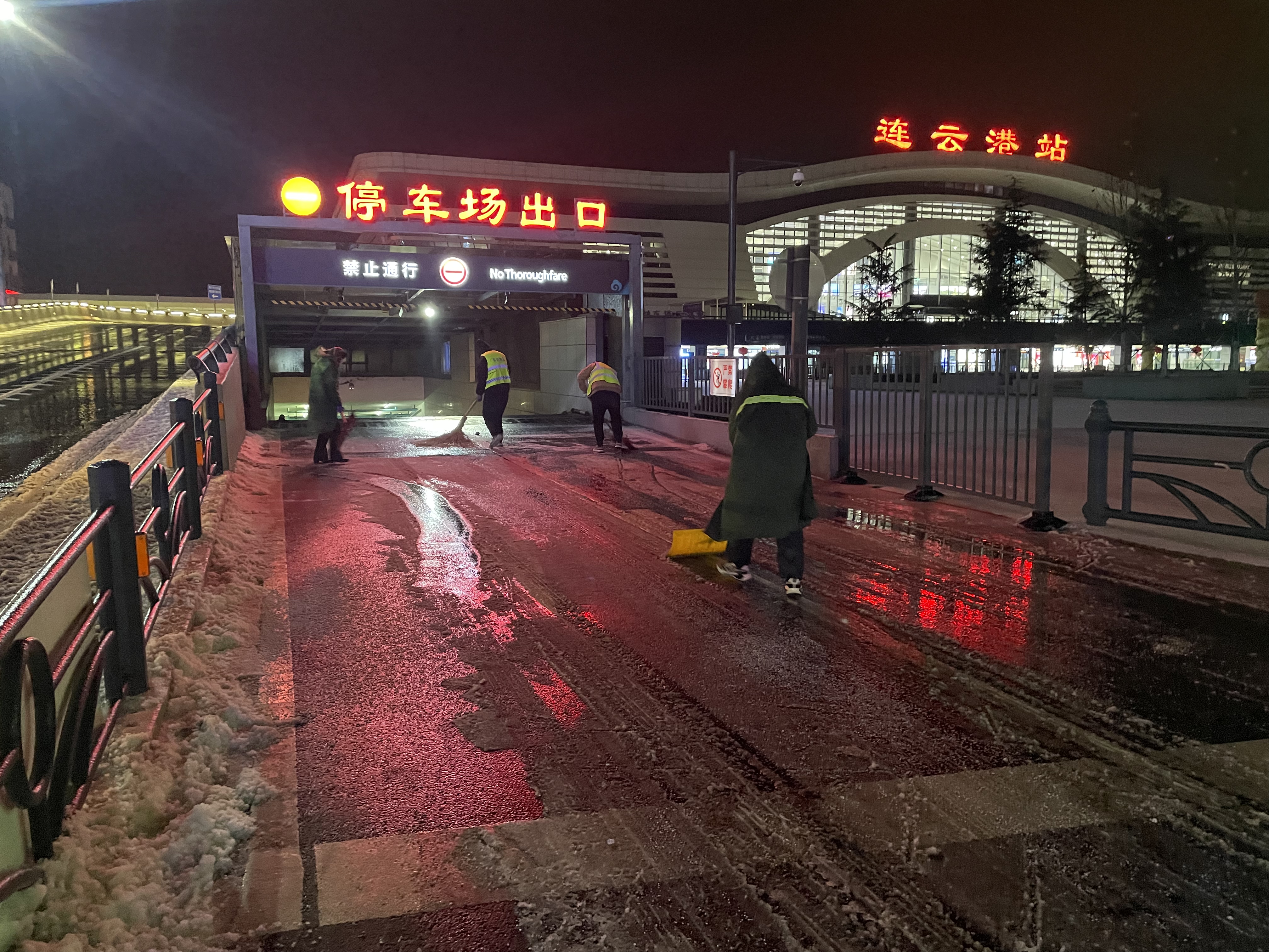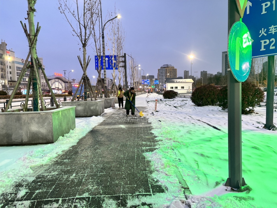 19日15时,交通赢博app最新版下载,赢博(中国)建立了3支应急队伍,共储备融雪剂8吨,并及时补充;应急车辆、手推式抛洒机、手推车、除雪机、铁锹、扫把等大量工具齐上阵。随着天气变化,交通赢博app最新版下载,赢博(中国)于19日21时启动冬季除雪防滑应急处置预案,一支由18人组成的融雪除冰应急小组迅速行动,冒冻雨开始逐步分段在出入口、人行通道、停车场出入口处等关键区域分段抛洒融雪剂,有效防止了道路结冰,确保了市民旅客的出行安全。20日,融雪除冰应急队伍增至35人,除雪设备、应急车辆数量翻倍,综合客运枢纽现场办全体干部职工24小时奋战一线,全域抛洒融雪剂5次,使用融雪剂总量达12吨。连夜的融雪除冰保障了连云港站早班高铁列车旅客的出行安全。