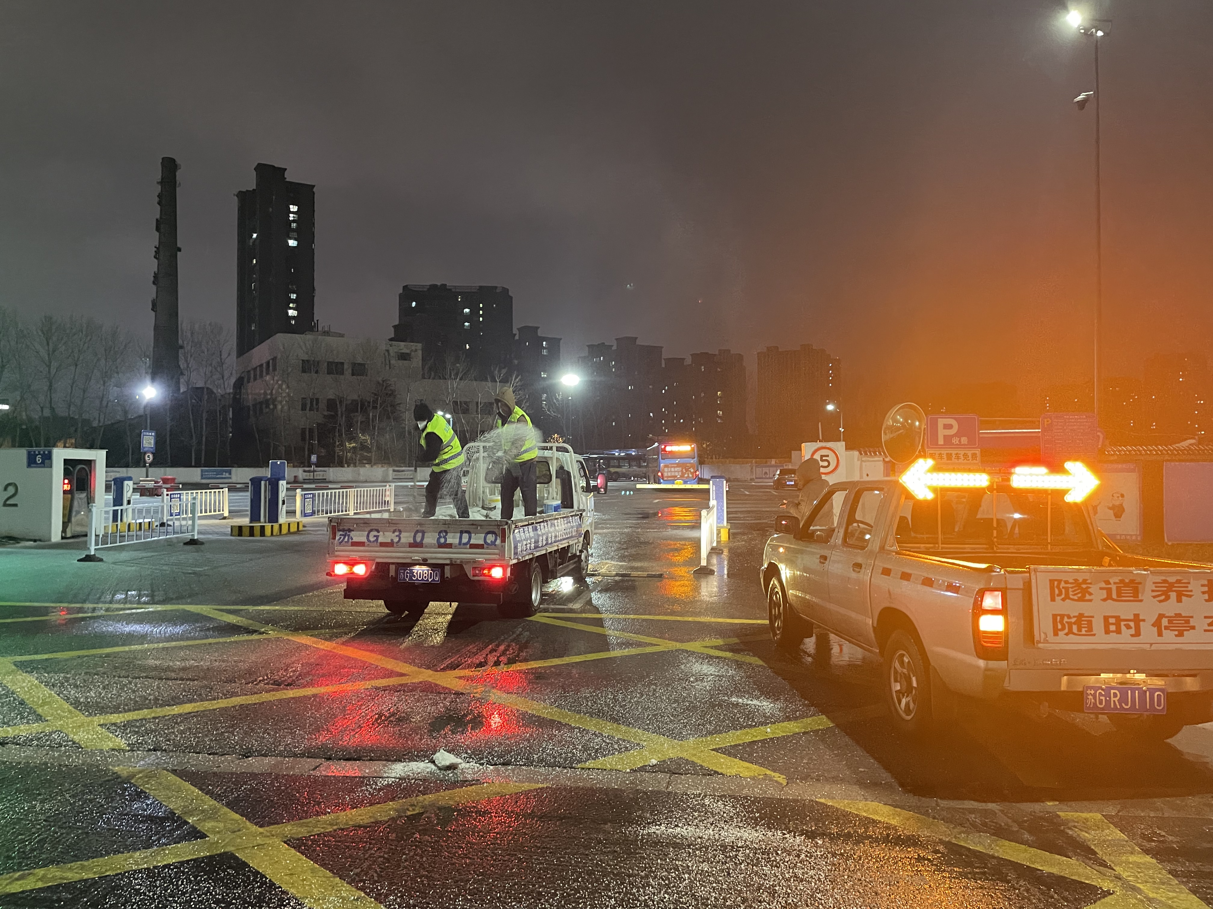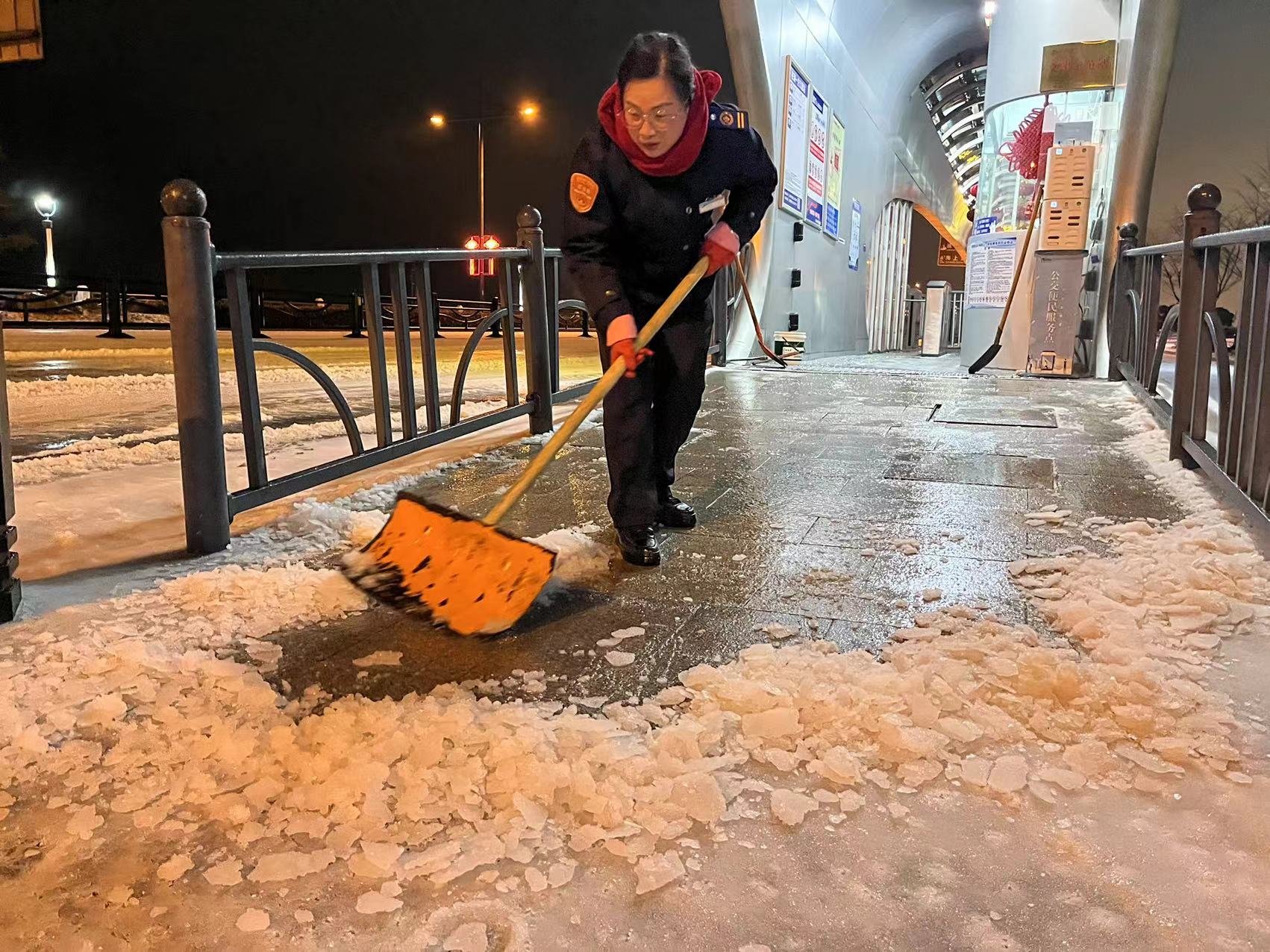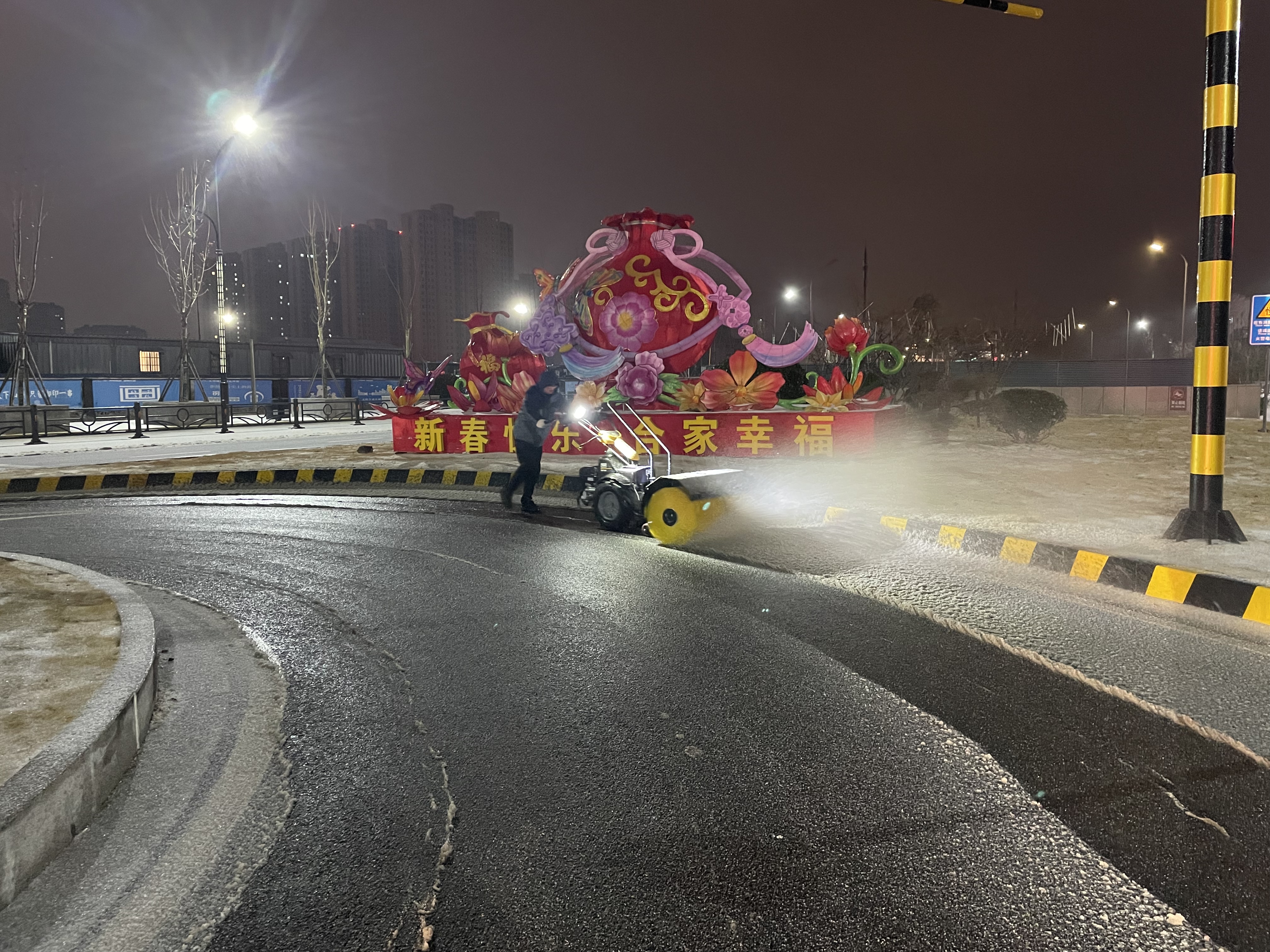 19日15时,交通赢博app最新版下载,赢博(中国)建立了3支应急队伍,共储备融雪剂8吨,并及时补充;应急车辆、手推式抛洒机、手推车、除雪机、铁锹、扫把等大量工具齐上阵。随着天气变化,交通赢博app最新版下载,赢博(中国)于19日21时启动冬季除雪防滑应急处置预案,一支由18人组成的融雪除冰应急小组迅速行动,冒冻雨开始逐步分段在出入口、人行通道、停车场出入口处等关键区域分段抛洒融雪剂,有效防止了道路结冰,确保了市民旅客的出行安全。20日,融雪除冰应急队伍增至35人,除雪设备、应急车辆数量翻倍,综合客运枢纽现场办全体干部职工24小时奋战一线,全域抛洒融雪剂5次,使用融雪剂总量达12吨。连夜的融雪除冰保障了连云港站早班高铁列车旅客的出行安全。