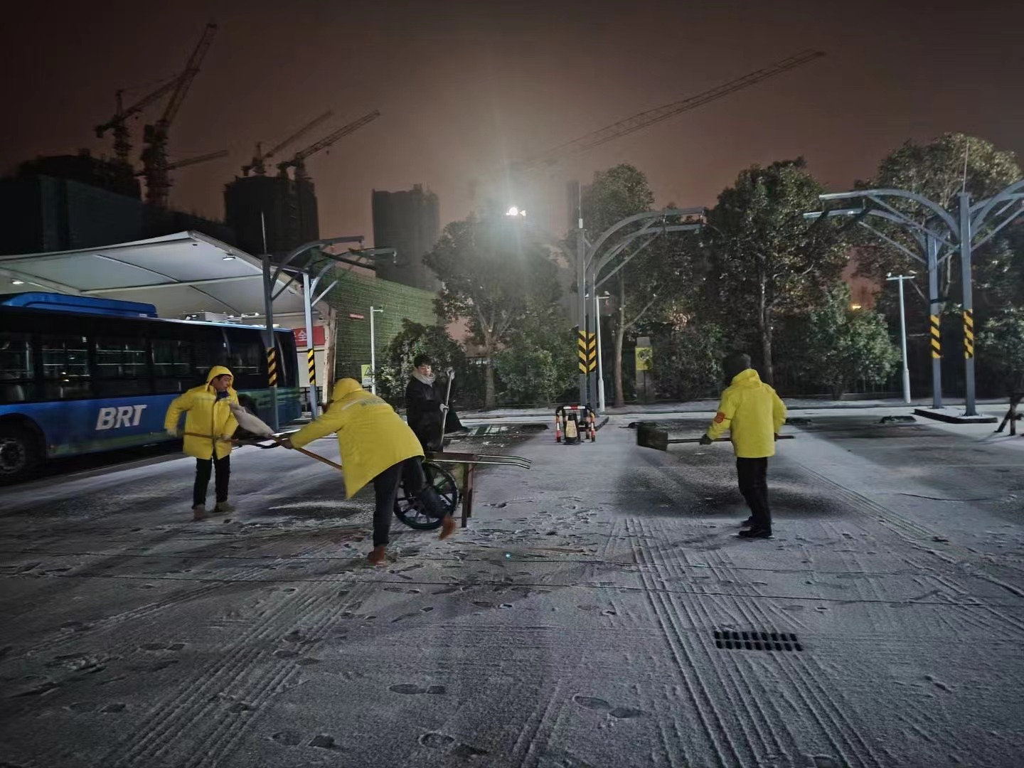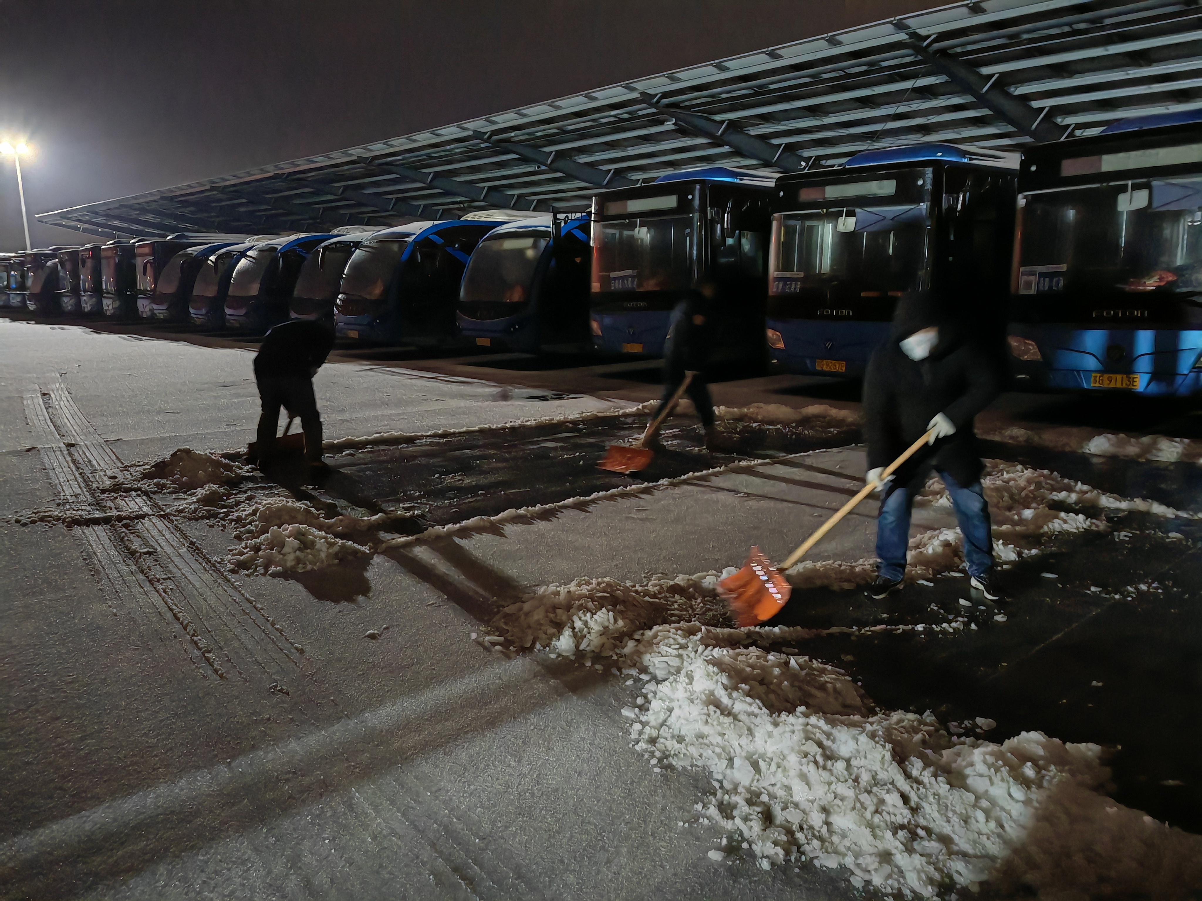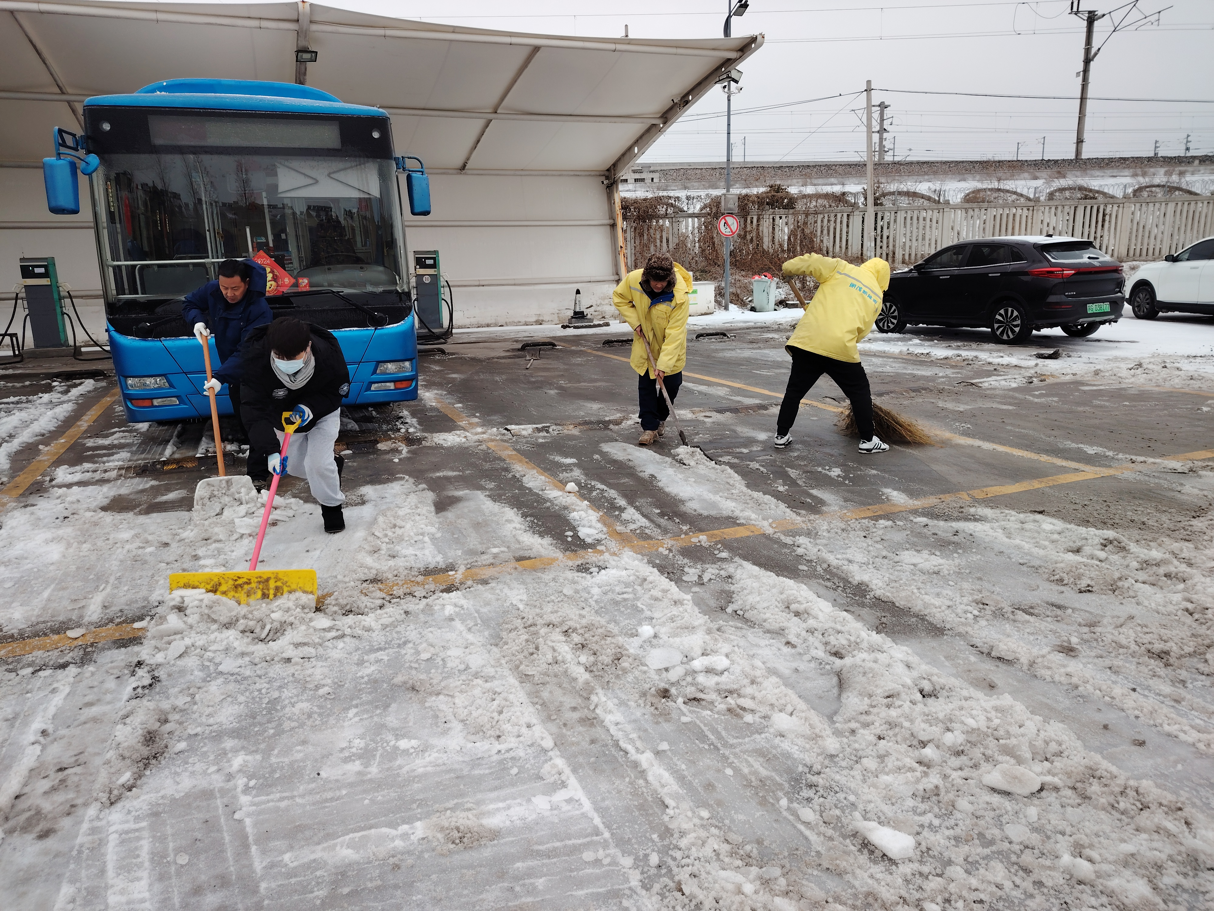 明茂公司在站内积极开展积雪清扫行动,以确保公交车的充电安全,及时清除充电站积雪,检查配电房、充电桩箱体、充电枪、充电桩、接地、消防设备等设施设备的情况,组织人员对充电站周边道路、室外台阶等处进行扫雪除冰,重点部位采取铺设麻袋、撒盐等防滑措施;充电站内,加强行车安全教育,严格站内车辆行驶及停放管理。低温雨雪冰冻天气期间,明茂公司将严格落实工作责任,落实24小时值班制度和领导带班制度,为广大市民的平安、便捷充电保驾护航。